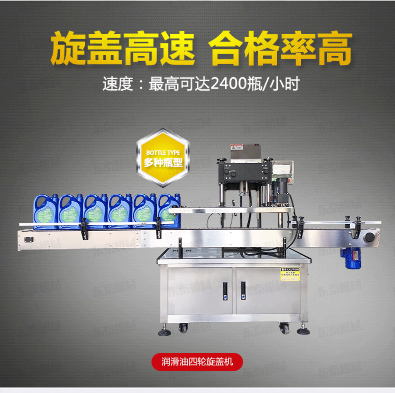 自動(dòng)旋蓋機(jī)原理:電氣控制運(yùn)動(dòng),穩(wěn)定性強(qiáng);設(shè)有定位裝置,旋蓋標(biāo)準(zhǔn),操作方便;鎖蓋范圍寬,可鎖不同形狀規(guī)格的瓶蓋;解決了噴頭、泵頭、噴霧泵、手扣式噴頭旋蓋難的問題;鎖蓋轉(zhuǎn)速可調(diào),可根據(jù)不同瓶蓋調(diào)節(jié)松緊度。
